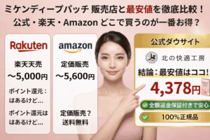 ミケンディープパッチが怪しいと言われる理由を詳しく知りたい人はこの記事を、返金保証の条件等を含めまずはご自身に合うか慎重に検討したい人は以下の公式サイトをご確認ください。